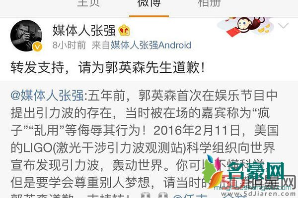 当事人郭英森则是说:“以前提出的都是理论,现在已经证实了引力波的存在,比以前更加精确。我提出的引力波,与之前的其实是一个范围,但怎么用才是关键。关于那期节目,我认为那些老板们确实应该向我道个歉,大多数人我都会接受,但是除了方舟子。即使他跟我道歉了,我也不会接受,主要是因为种种原因吧,不单单是他嘲讽我、与我激烈地辩论。”