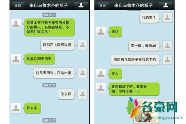 我们先来看看乌鲁木齐微信门的具体情况是如何。在2012年的时候,网络曝出了一名上海的男性网友和乌鲁木齐的女性网友微信聊天记录。内容大概就是乌鲁木齐的女性网友通过漂流瓶认识了一位男性网友,开始的时候这名乌鲁木齐的女孩便表示自己寻找一位有名车长相好的男人,有意则联系,不够条件的勿扰!意思大家或许都明白,就是约炮要钱。