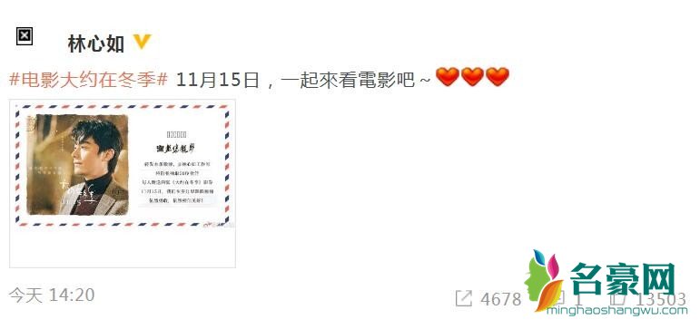 据了解,《大约在冬季》这部电影是由马思纯和霍建华主演的,如今这部电影即将上映,作为家人的林心如肯定也是非常激动的,网友们对这部电影都是非常期待的,希望能够看到不一样的演出。