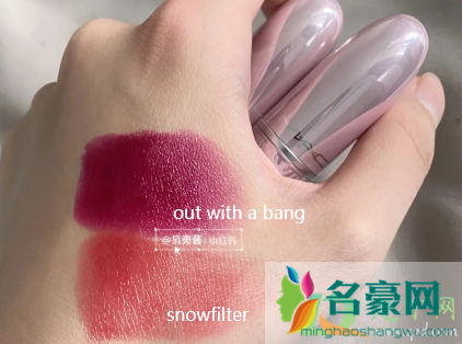 临近圣诞,不少大牌彩妆都会推圣诞限定系列,这次mac魅可的圣诞限定是烟花粉的外盒,虽然颜值方面褒贬不一,但是产品还是值得期待一下的。主要是有子弹头唇膏、单色腮红、单色高光和高光三色盘四种新品,子弹头有5支新色,4只口红和一直用来叠涂的单闪色。out with a bang这支是紫调浆果色,稍微有丢丢挑人哦,建议理性种草!