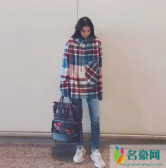 娜娜的穿搭也不受限于任何风格和颜色的格纹,搭配一件基础的黑色或灰色上衣就很率性。而红白蓝色格纹的oversized男友风设计在她身上亦可穿出率性时尚感
