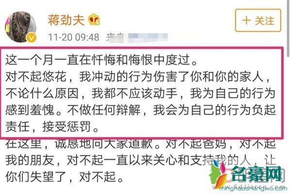 蒋劲夫致歉