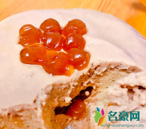 它无论是口感还是味道都很柔和,很扎实的蛋糕坯,不仅蛋糕表面有珍珠,切开后里面也是满满的珍珠!