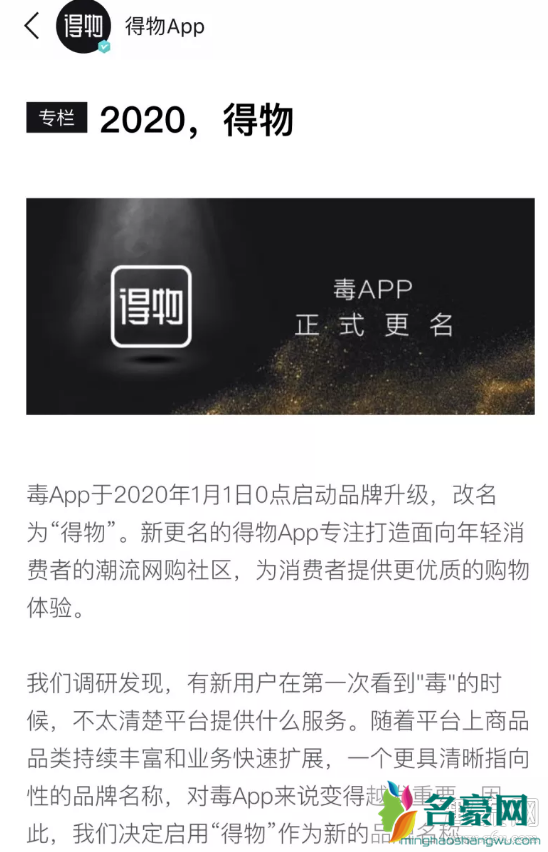 二,“毒”本身是一个潮流交易平台,“得物”符合这一点,准确达意,相较于“毒”来说,让人更容易理解这是一个买东西的APP。三,拼音串起来“得物毒”,很棒。