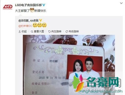 电竞这样的圈子中有着鼠大王的存在也是传奇一般的故事,但是没有想到的是在2015年的11月9日,刀圈再次传来喜讯。鼠大王在自己的微博上称:老婆已经怀孕三个月,此次韩国之旅买了些结婚用品,会在11月11日领证结婚。这样的消息是真的令非常的多网友震惊,那么最好奇的其实是鼠大王究竟是为什么会选择在这一天领证呢?其实也是因为双11是光棍节,也是希望那些曾经丢掉女友,导致单身的网友能够一起分享自己的幸福,这样的行为其实是很暖心的吧!不过关于鼠大王在哪里举行婚礼,在什么时候开始举办这样的日期是没有明确的说明的啊!也是能够说明一点就是鼠大王就是奉子成婚的吧!