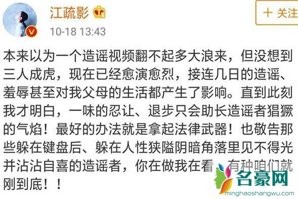 江疏影本人是学霸,自出道以来饰演的也大多都是高智商的女性,并且一贯风格都是青春靓丽,饰演的校园剧更能够让人唤回到校园时光中,所以对于江疏影是视频中女子的信息大多数人还是不相信的,但是无论怎么说这也必然成为她人生路上的一个污点,所以说还是要用法律武器保护自己。
