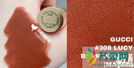 gucci2020新款彩妆新上了几个限量金管口红新色,哑光质地。其中的一个限量色号308#Lucy Dark Orange,可以说是一个棕调的吃土色,没有什么红调,也有人称它为“粑粑色”。也正因为没有什么红调,感觉黄黑皮的集美不是太适合,不过我们还是可以下看看试色图再决定吧。