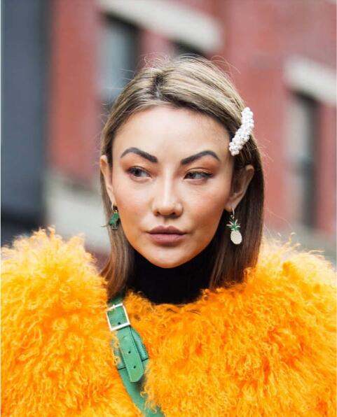另一种演绎就是将多个一字型阿婆发夹都夹在同一边,这种重金属的状态,会令造型更加有型。