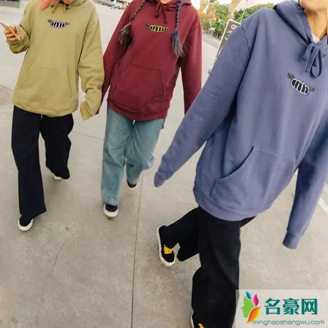 T恤,卫衣,滑板鞋,搭配是黑色的裤装,最基础的板仔造型就算完成了。