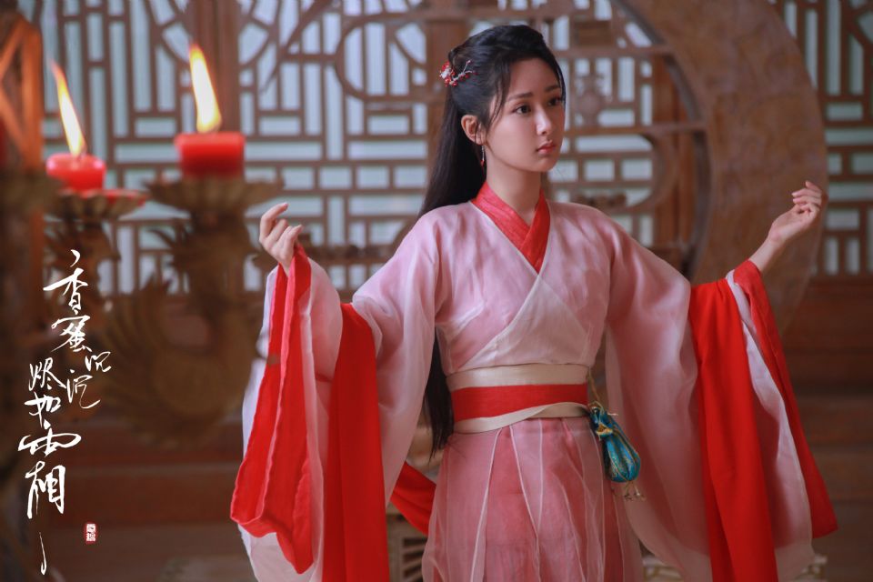 锦觅在扮回女儿身之后常常穿着粉色衣服,让她成为最美丽的花界仙子。