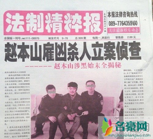 在赵本山退出春晚的第二年,网上便有网友弄了一张报纸的截图,报纸上还刊登了一则赵本山被抓的一则新闻。新闻上白纸黑字上面大大的标题写着“赵本山雇凶杀人立案侦查——赵本山涉黑始末全揭秘”,并且还配了一张赵本山带着手铐,身边有两位警察的照片,这一看真的挺像这么回事。但是这其实纯属虚假新闻,都是那些无聊的人利用电脑软件给做出来的图片。随后赵本山便露面调侃道:“是不是看我瘦了点,这段时间最大的收获就是身体好了......我就是一个演员,没有任何事儿”。