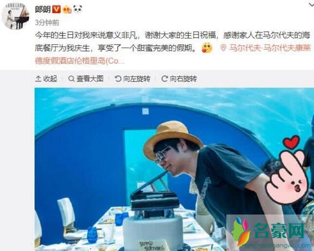 近日,郎朗在社交平台上晒出照片,并且表示在度蜜月的同时过了一个生日,享受了一个甜蜜完美的假期,郎朗非常感谢大家的祝福,照片中,郎朗带着妻子和家人在马尔代夫享受蜜月的同时,场面简单温馨,十分幸福。