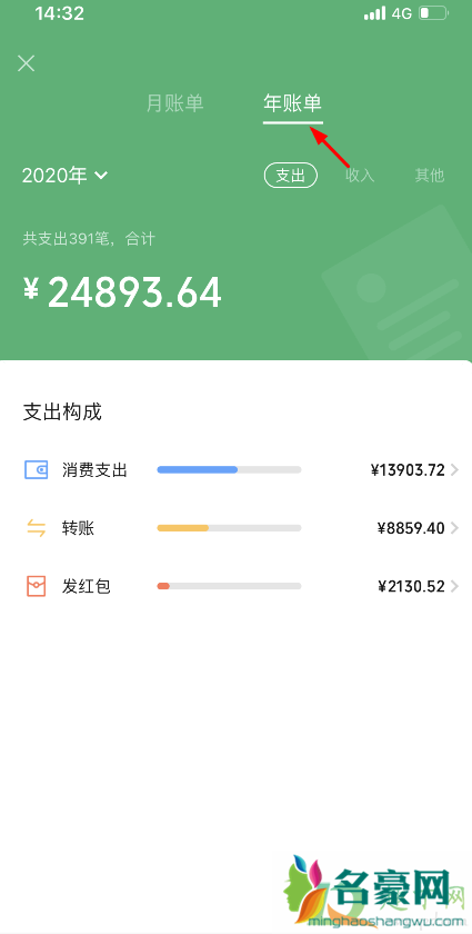 6、2020微信年度账单就出来了,在这里可以显示出你消费支出、转账以及发红包分别支出是多少。