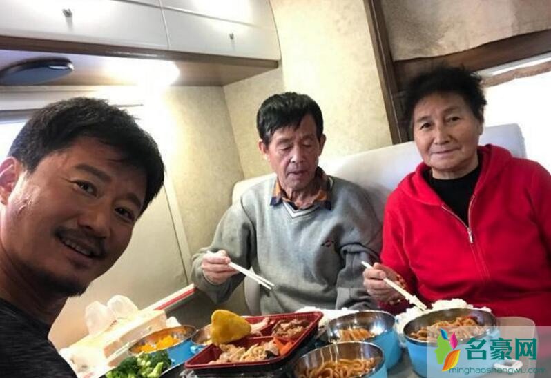 吴京与爸妈合照