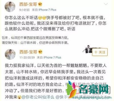 仙洋是网络上的一名主播,他因为在天佑生日的时候被人群殴,成为了但是最热门的焦点人物,后来每次在仙洋主播事业进入低谷或是和被人干架受到委屈的时候,有一位ID名称是西部宝哥的人就会出来声援和或安慰仙洋,这个人经过网友深挖,已经证实是仙洋的干爹。仙洋干爹宝哥听说在东北还是很有实力的,是沈阳西部酒城的大股东。关于这位西部宝哥的事情,小编世道的不是很多,不过,就从西部宝哥对仙洋的态度,宝哥和仙洋的关系是很不错的。最近网络上对快手平台进行了非常严格的管控,仙洋也被点名禁播直播,西部宝哥却第一时间出来声明仙洋被封是快手对他个人的一种保护,仙洋一定还会回来继续直播的,西部宝哥这位干爹可真是够暖心的。