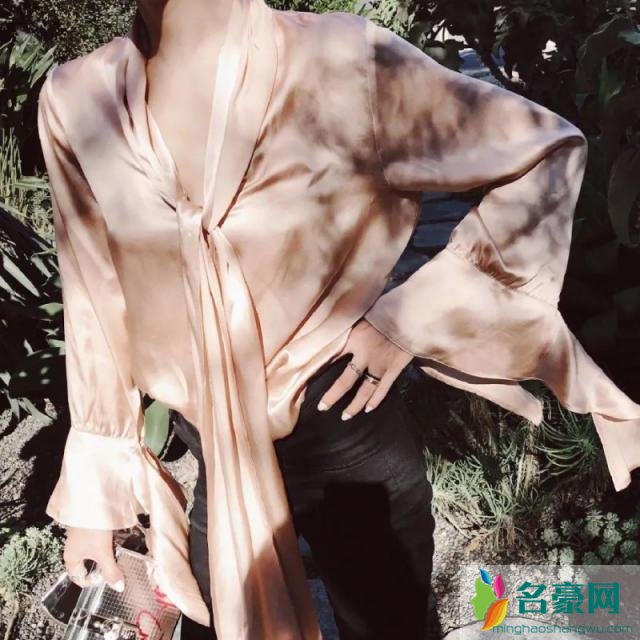 真丝缎面的衬衫最常见于成熟的职场女性穿搭,显贵又极具大女人味道,这上身效果不要太高级啊!