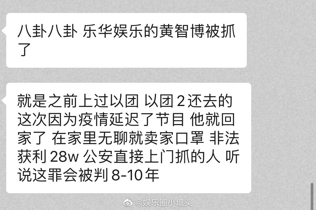 据说以团之名的选手乐华的黄智博,疫情之间虚假贩卖口罩被抓了,小艺人是挺难的,但是孩子这是犯法的呀