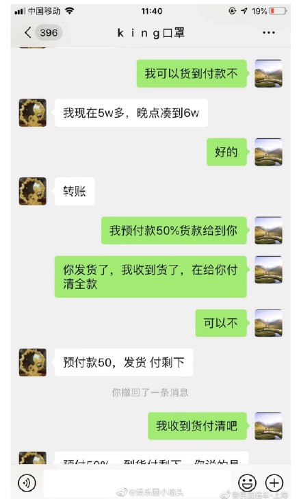2月1日,家住浦东的小袁来到上海市公安局浦东分局王港派出所报案称:其在家中通过某贴吧寻找到一位卖口罩的商家,然后通过微信联系,商定以每个单价0.9元购买40万个口罩,并已预付定金人民币10.7万元。商家收到预付款后,要求小袁自己去扬州提货,当她赶到扬州后却无法找到提货地点,遂发现自己被骗,随即报警。