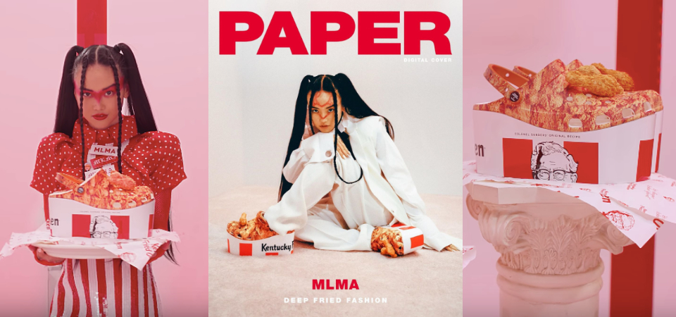 肯德基与 CROCS的联名鞋款登上了Paper杂志,连Paper的IG小编都说他完全没有头绪,但是已经陷入这个难以理解的时尚魅力了!肯德基这次给时尚界带来震撼教育,用炸鸡拖鞋告诉众人,什么叫做“deep fried fashion ”!
