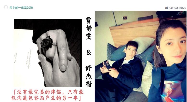 看到贾静雯的Insta,真的蛮感慨的。 每对情侣都有他们的相处方式, 不需要去追求那些不合适自己的,好好珍惜每一天就可以了!希望大家都能有情人终成眷属!