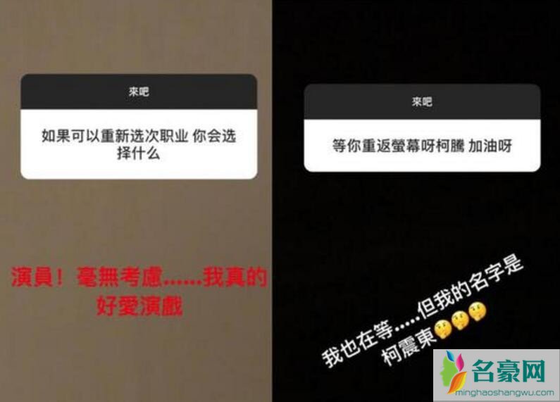 在聊天的过程中,柯震东表示现在自己每天起床都有面对心理医院,因为已经在努力变成一个正能量的人了,而且柯震东还坦言表示,如果可以重新选择职业,柯震东还是会选择演员的,因为柯震东真的好喜欢演戏。