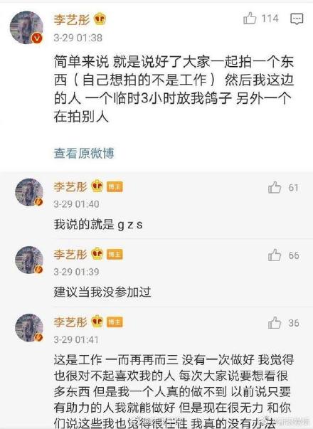 近日,李艺彤凌晨在微博公开发文,指责工作室和丝芭娱乐。称工作室人员临时放了鸽子,而改去拍摄其他艺人,最后李艺彤还取关了工作室的微博。