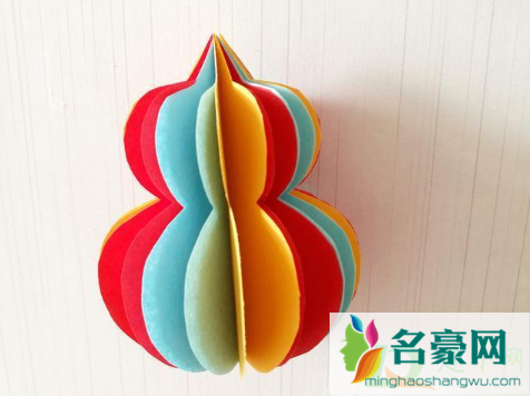 16、把底层拉过来,和顶层粘在一起,仔细安排每层的间距,一个漂亮的彩色立体葫芦准备好了。