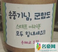 在《军舰岛》宣传活动当天刚好下起了雨,因此宋仲基下车后由工作人员撑伞,在雨中接受媒体的访问,被问宋慧乔有什么优点,宋仲基面带笑容的说自己从宋慧乔身上获得很多影响和力量,多谢大家的关心和支持,紧接着宋仲基还面对镜头比出心形的手势,然后才跟随工作人员进入活动现场,而在活动期间,主持人朴庆琳也不忘调侃宋仲基好事临门,暗示他:“你脸色比起任何时候都要好。”最后被宋仲基装傻应付了过去:“我好紧张,有什么事呢?我不知道呢。”