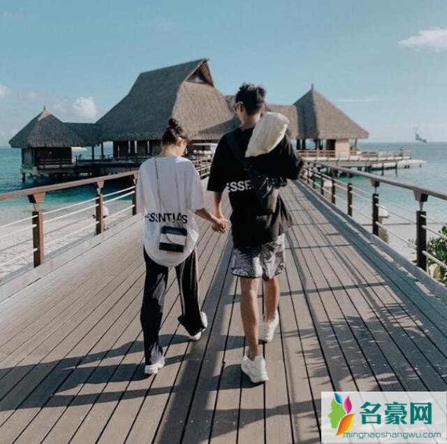 照片中,何超莲和窦骁身穿一套情侣套装,搭配情侣运动鞋,两人在海边度假村的长廊上十指紧扣散步,碧海蓝天下,俊男美女不时深情对视,画面很是唯美,让人看了十分羡慕不已。