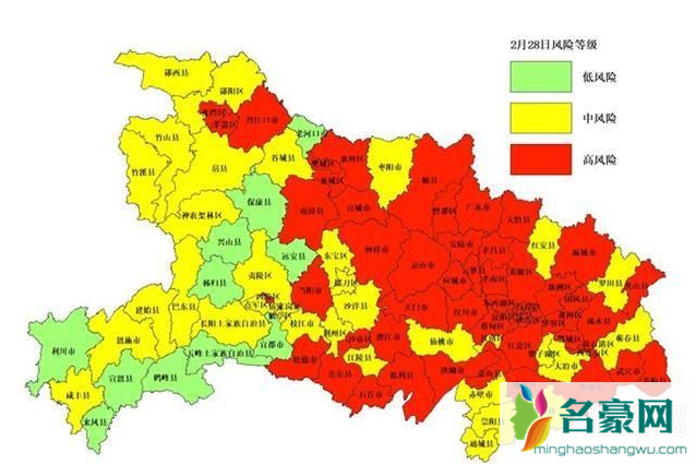 这个时候,解封复工的风险很大,以下为2月28日的情况,从评估结果看,11个县被评为低风险;34个县为中风险;58个为高风险。