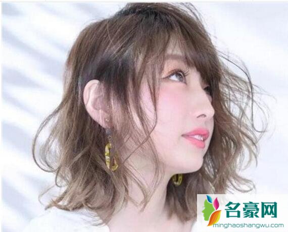 一款隐约露出了漂亮耳朵的女生齐肩卷发发型,这样的2021卷发发型看起来也是特别的凌乱的,这样的韩国卷发发型显得轻盈又很大方,侧式的长刘海,还对头发有很好的修脸的效果。