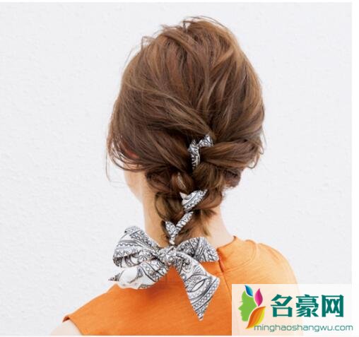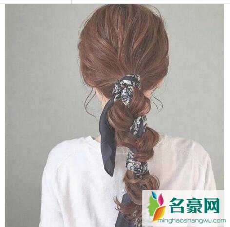 这一位女生的头发是稍长的,她的丝巾辫子发型是先把头发扎成马尾发型,然后再用丝巾来装饰一下,这样就能用丝巾编辫子了,效果还是特别的好看的。