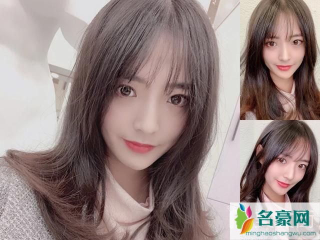 任何脸型都适合的法式刘海发型,头发是韩式蓬松气垫烫,发尾有些s型,还带些外翘感,而刘海采用的是法式的八字刘海,真的很适合大脑门、脸大的女生。头发染上时尚自然的黑茶色,肤色都白了好几度。