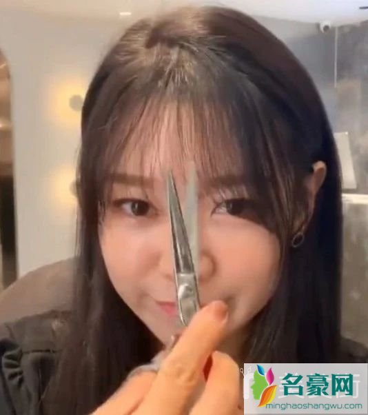 对了,这个刘海的话,可能对于脸盘比较大的人,可以说是一个比较瘦脸的方法了。主要是因为剪完了之后你可以轻松的看到这一幕的肉肉都不见了,全被隐藏了起来。