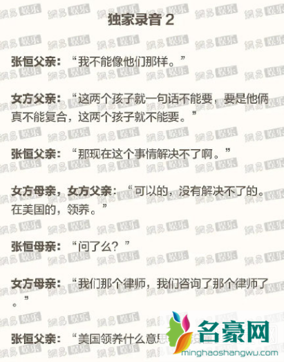 2019年10月份,张恒的父母专程到上海的郑爽家道歉,谈话时间在下午一点多到晚上七点多,期间,双方聊到了孩子的问题,但没有达成一致意见。也就是网上爆出的相关录音,导致郑爽的人设崩塌的关键: