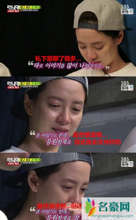 上周,Gary参加的最后一次running man录制节目播出,一开始还是欢乐气氛的七个好兄弟姐妹到了最后的分别时刻也难以控制自己的情绪,作为男人自然是不会轻易流泪,但是唯一的女生宋智孝则毫无保留的在镜头前哭的梨花带雨,这也是他们作为周一情侣的最后一次同台演出,想到以后再也不能和Gary搭档,宋智孝也哭着送出了自己的祝福。大家一一和Gary告别,也就此结束七人时代,之后很长时间将会以六人组合的形式继续该节目的录制。