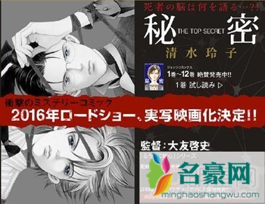 漫画《秘密》讲述了在高科技未来,警察科学警察研究所法医第九研究室,薪和青木,利用机器将死者大脑中所存储的图像视觉化的新技术称为MRI搜查,以此来解决疑难案件。电影预计在2016年夏上映!