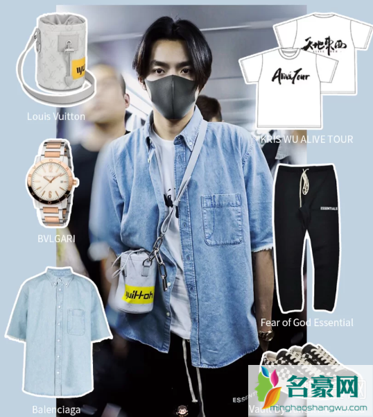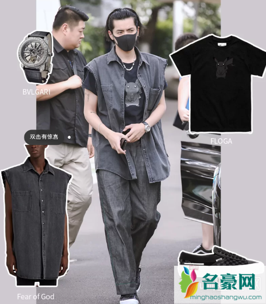 LOOK2:黑色T恤+牛仔外套,穿上牛仔外套的吴亦凡真的A到爆!内搭黑色T恤完全的阳光大男孩模样。