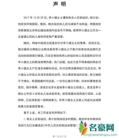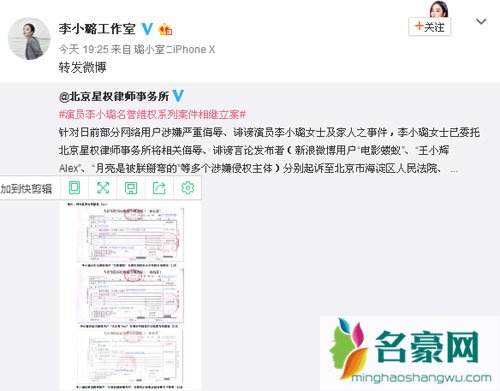 至今为止万宝路事件已经过去1个月了,没想到一个月没有发声的李小璐会在风波平息之际选择发声,瞬间原本渐渐平息的事件再度引起网友们的关注,据了解这次李小璐的态度十分强硬,工作室直接转发北京星权律师事务所的微博,称网上肆意的诽谤已成为网络暴力,对李小璐和家人造成了严重伤害,对此工作室已委托律师进行调查取证,就目前可确认的侵权主体,已经在2月1日向法院提起诉讼,他们将依法追究其法律责任。