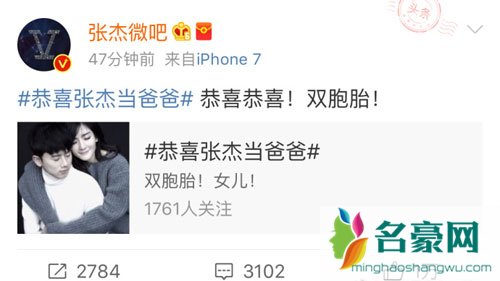 张杰宣布喜讯