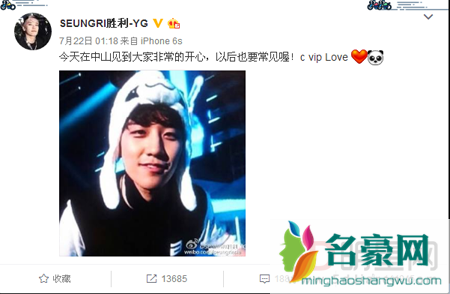 昨天凌晨bigbang结束了广东中山的演出,内地的巡演基本结束,所以胜利也在微博上发表了一条微博“今天在中山见到大家非常的开心,以后也要常见哦。”还向中国的粉丝们表达爱意,但随后胜利有发布了一条微博说他们在中国的活动全部结束了,很快就被粉丝们指出接下来不是还有香港的吗?我们找到了bigbang在22日之后的一些活动行程,发现果然在香港还有好几场的演出,胜利这番话不可能是不知道自己接下来的行程也显然没有考虑到香港原本就是属于中国的。他的粉丝好心提醒香港也是中国的一部分之后,胜利秒删了该条微博,由于时间较短并未引起大范围的关注。