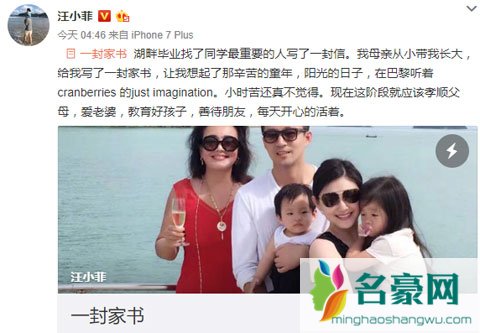 在家书中母亲张兰细数了汪小菲从小到大的优秀,无论时在课业上还是体育方面,还多才多艺会拉小提琴会玩滑板会游泳,无论哪方面都十分有毅力的坚持下来,不被恶劣的天气和环境所打败,在自己进步神速的同时也不吝向其他小朋友们赐教,每次开家长会张兰都会参加,因为“儿子是那么让我自豪!”之后还提到汪小菲小时候不怕脏不怕累的主动帮助捡垃圾的老奶奶,长大后又帮助大雨中的老人去火车站,一如既往的善良。