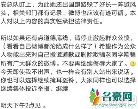 凌晨五点的时候他也学卓伟称:“下午两点见”,之后便爆料马苏最近勾搭上了乒乓球选手张继科一起“做头发”,并多次怂恿其他女明星一起。另外马苏多次带女明星给几位老板,他掌握有部分的照片和监控视频,但考虑到尺度的问题会陆续选择性公布,并称“坐实马苏在娱乐圈内的老鸨身份”,在2015年五六月份因为介绍拉人交易被北京治安总队盯上,为此还到国外跑路很长一段时间,相关部门都有记录,他也可以对以上内容的真实性承担法律责任。黄毅清在文章开头用了一个“序”字,在结尾称明天下午两点见,网友们也坐等明天的料。