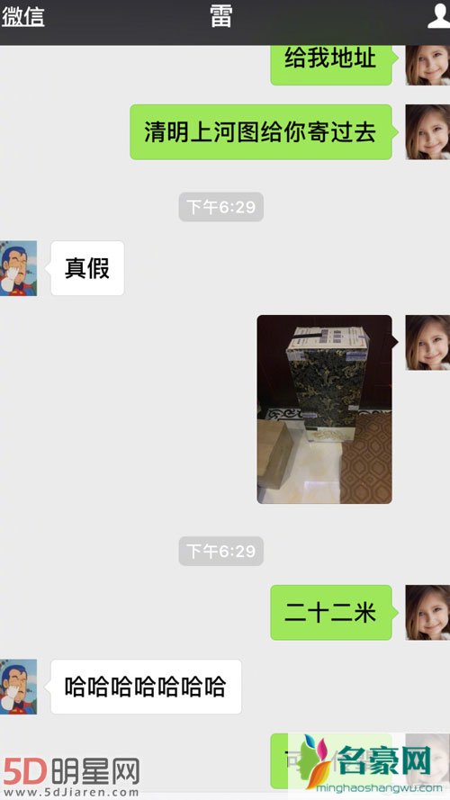 1月5日岳云鹏在微博上发文宣布与雷佳音的恩怨就此了结,同时他还晒出三张图片,图片上的内容是他手拿清明上河图刺绣的画面,最后一张是他和雷佳音二人的微信聊天记录,岳云鹏在上面说让雷佳音把地址给他,他好把清明上河图给寄过去,雷佳音听到后还懵了一下,没想到岳云鹏直接甩出二十二米的刺绣图,直接把雷佳音给逗得哈哈大笑,一直记着仇的小岳岳回赠了这份大礼后可谓是扬眉吐气。