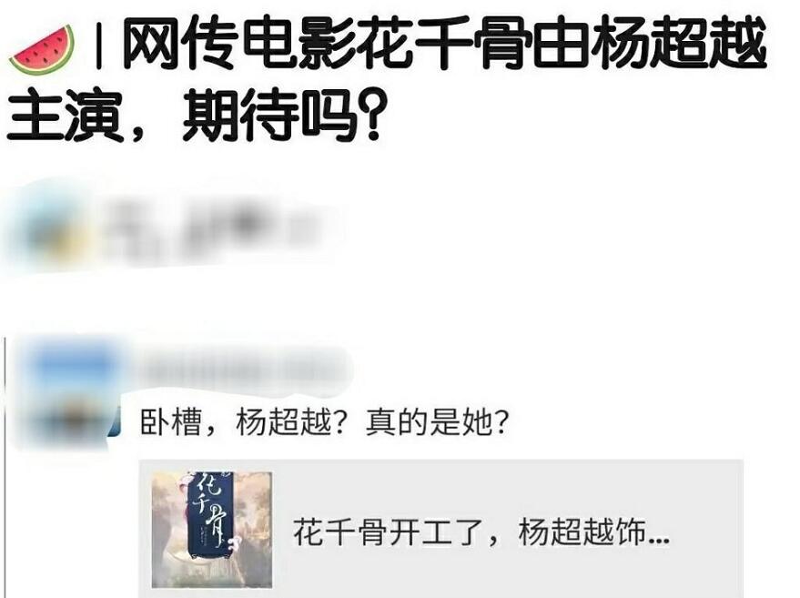 杨超越作为鹅厂的亲闺女,不论实力怎样总是不遗余力地捧她。杨超越的影视资源还算不错,这次有消息称拿下了影版《花千骨》,这部剧之前可是爆款,不知道这次杨超越能否锦鲤再次附身。