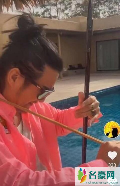 孙兴面对镜头认真拉着二胡,除了孙兴此次露面引人注意外,他身后的豪宅背景也难以忽视,首先映入眼帘的就是院子里的超大游泳池,看着波光粼粼的,想来他没事就会到这个泳池处待着,才会晒成现在这个肤色。