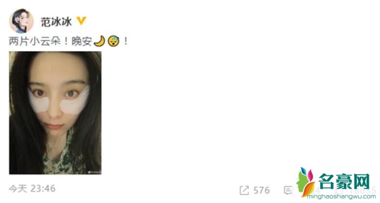 近日,范冰冰在社交平台上更新了动态,范冰冰晒出了自己的睡前自拍照,并且配文表示:“两片小云朵!晚安!”照片中,范冰冰贴着两片眼膜,素颜出镜皮肤状态好,一双大眼睛水汪汪的,嘟着嘴的模样很是动人。