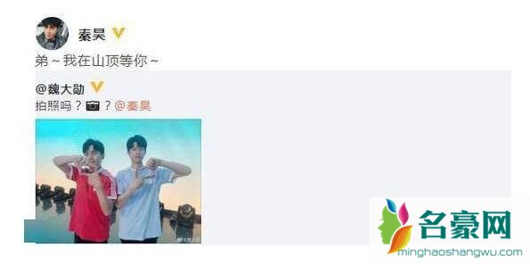 魏大勋的动态发布出来以后,随后秦昊本人也转发了此动态,秦昊并借用近日自己的热播网剧《隐秘的角落》中的梗回应互动称:“弟,我在山顶等你!”十分逗趣。