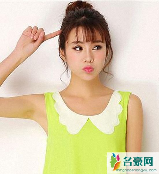 一款简单的清爽半扎丸子头,即修颜有限嫩,搭配上厚厚的齐刘海,轻松展现非常好看的甜美气质。