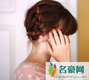 日常休闲之余妹子们可以尝试的盘发造型,将两边的头发按两股辫拧转的方式全部聚拢在一起,剩下的扎成小发髻,甜美清新,很显知性气质。